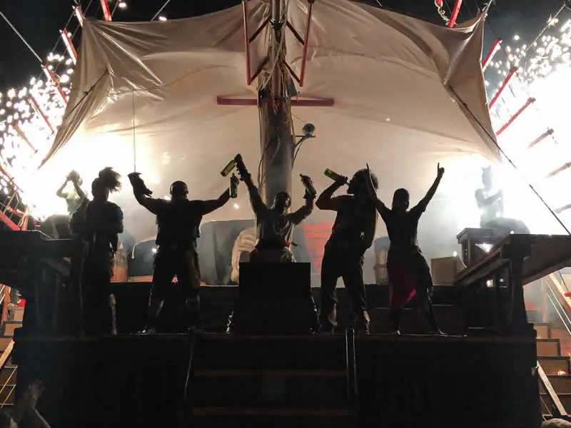 Durante el recorrido, la tripulación pirata ofrece un show lleno de energía, humor y dramatismo, convirtiendo la navegación en una experiencia teatral única. El espectáculo está diseñado para mantenerte entretenido de principio a fin, con participación del público y momentos memorables.